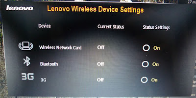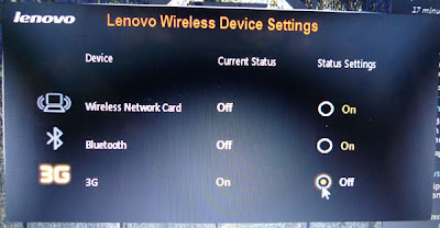 After putting back the cover and the battery, boot the netbook normally. On some instances, windows would detect the modem and try installing a driver and then show that the driver is not installed successfully. Most of the time, it will not detect the modem right away. If that is the case, presss Fn-F5 to show the Lenovo Wireless Device Settings window. You will then see the 3G switch at the bottom. Click the circle beside the ON to enable the modem.
