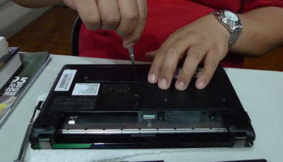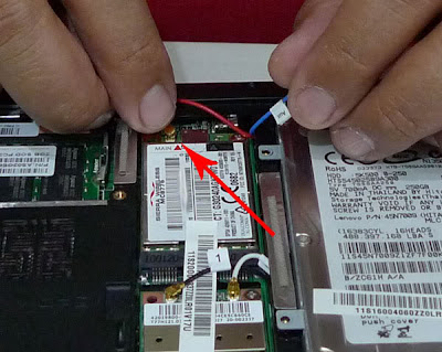 A close up look at the mini pci-e slot. The slot didn't come with the screw that will hold the 3G modem in place so we're going to use the HDD screw adjacent to it. No need to worry as the HDD still has another screw to hold it in place.